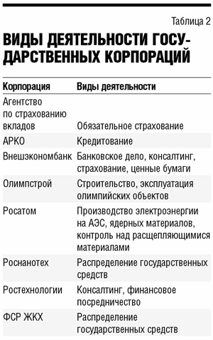 «Сегодня, — говорится в нем, — создание подобных структур превращается в фирменный знак российской экономической политики. Поправки к федеральному бюджету текущего года выделили трем ГК финансирование на общую сумму 550 млрд рублей». Проблема, однако, не во всплеске их «рождаемости» и щедротах государства.
